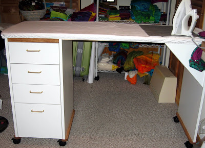 My Christmas present this year is a new ironing station. It was built by Tracey’s Tables in Wisconsin and delivered two days ago. I love it. It has a nice big surface to iron and work on and it also comes with a cutting mat if I so choose to use it it as a cutting area. I already have a sewing table from Mike at Tracey’s Tables and I love it too.