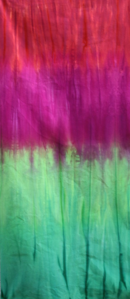 Rhubarb I $24.00 Fabric Cotton: 1 yard $24.00 Cotton: 1/2 yard $12.00 Silk: 1/2 yard $20.00 Wonderful gradation from Red to Magenta to light Green to Dark Green.