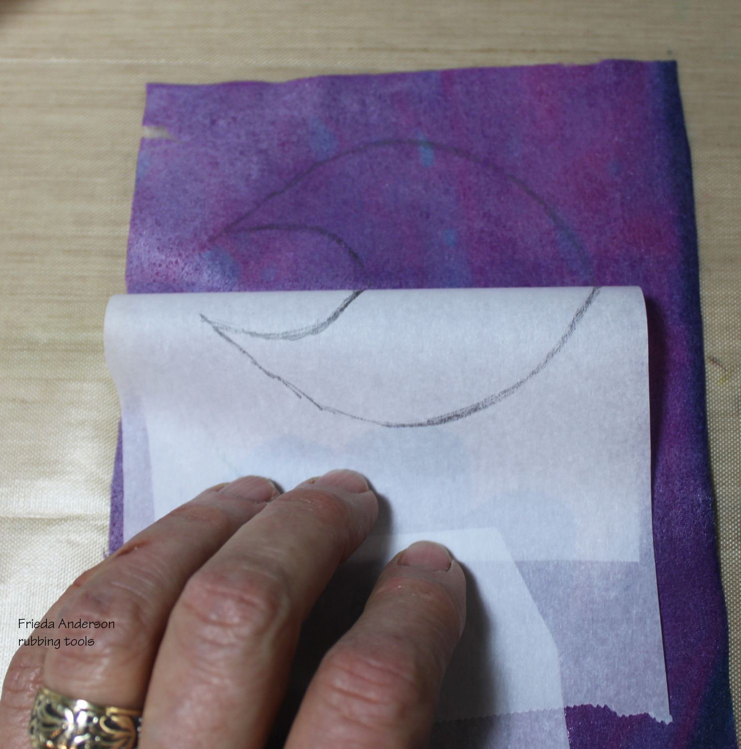 I gently peel back the paper to make sure the design has transferred before I remove the paper completely. If it didn’t transfer well, rub it again before you shift the paper so the marks are still lined up.