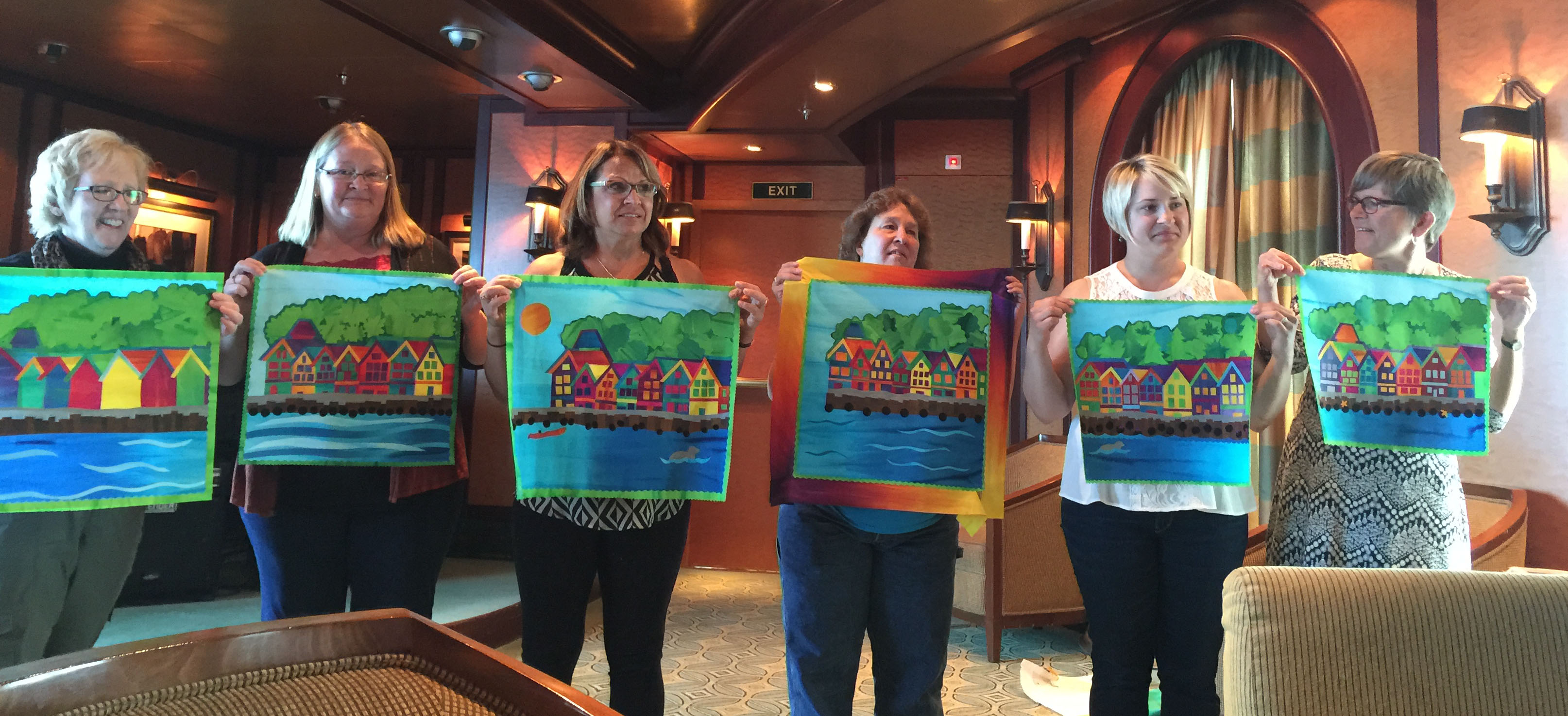 We had a great day of designing and making our tops. We were all cruise acclimated by the time of this class and had been on the ship long enough that no one got dizzy working.