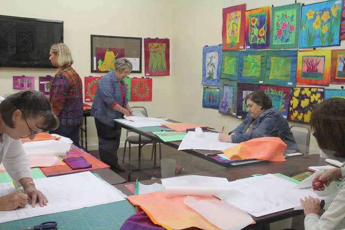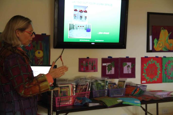 I gave a lecture - Flooded with Color from my book Fabric to Dye For - and taught a class - Three Pumpkins - at a wonderful store in St Charles IL called Sew Generously.