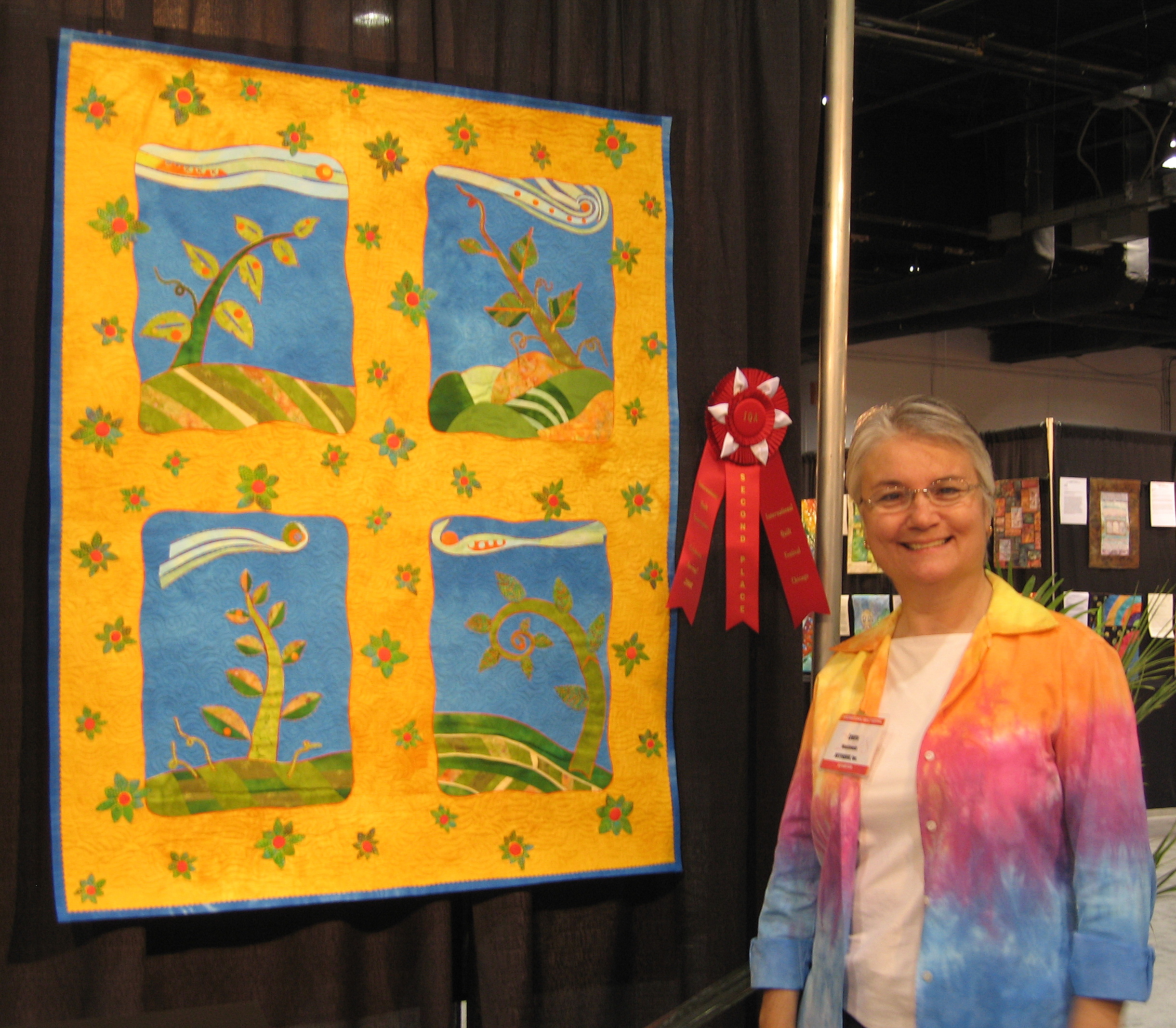 Judy Coates Perez works with paints and inks in her fantastical textile work. Judy also travels and teaches her fun techniques.