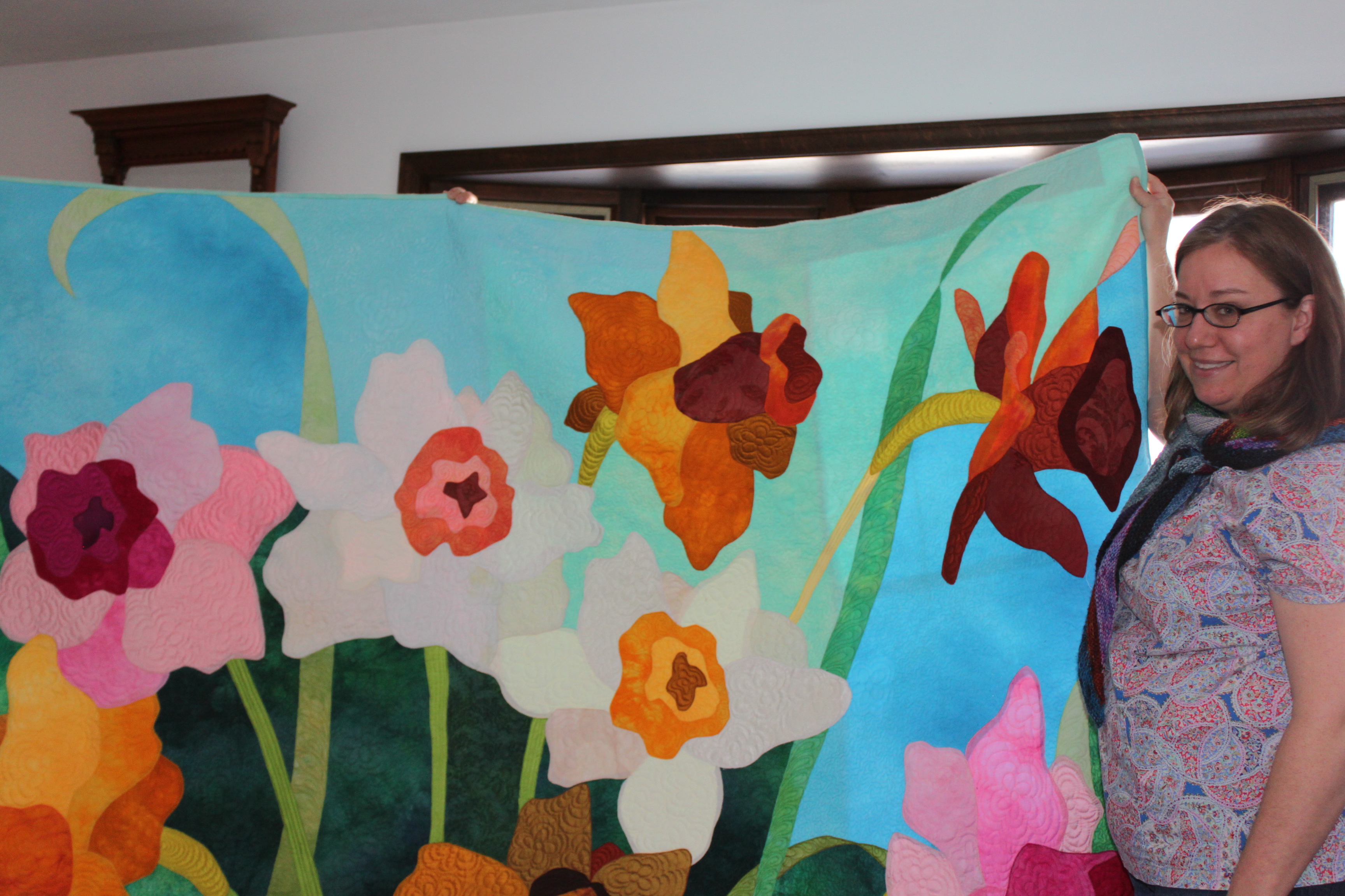 Emily Parsons is a fantastic quilter and knitter and I am sure you will enjoy her larger than life quilts. She also sells her hand dyed wool yarn. It is my FAVORITE yarn to use for socks. She sells her yarn on Etsy under Emilyparson.