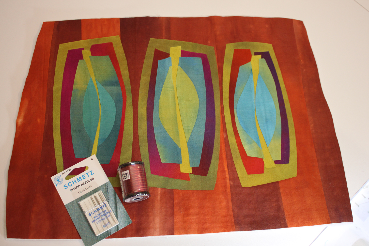 I machine quilted the background of this piece with a variegated silk thread from Superior threads in a pattern similar to the one I call bark.