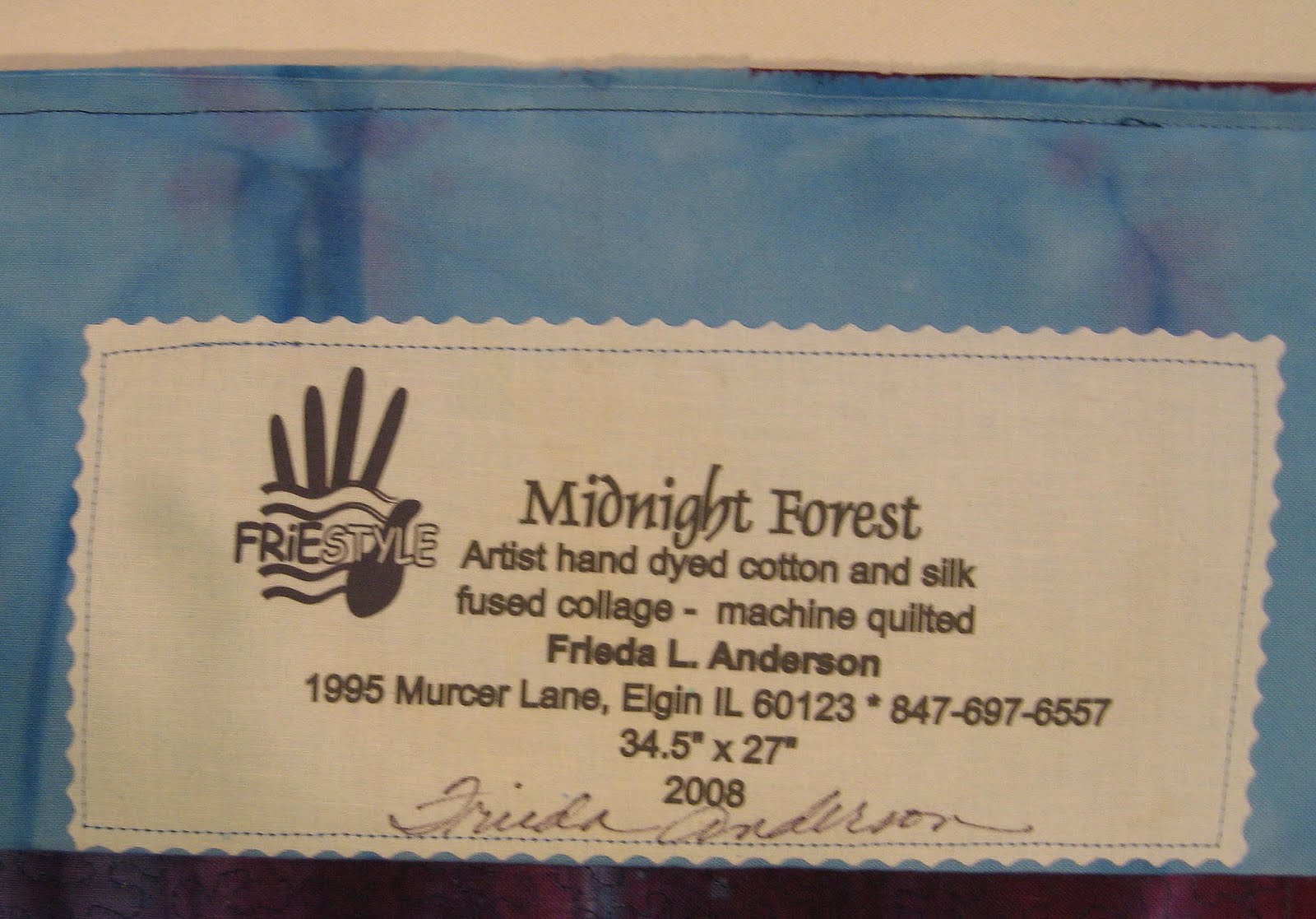 Before you put the binding on you want to add a sleeve to the back of the quilt. I fuse my label to the center of my sleeve and stitch it down, it seems like a good place to put it.