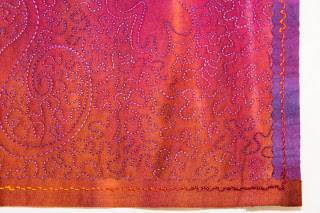 This is the edge of my quilt “Star Lillies” and is top stitched with #30 weight rayon thread.