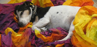 I love the four fabrics, and George looks SO contented in his stash pile! lol