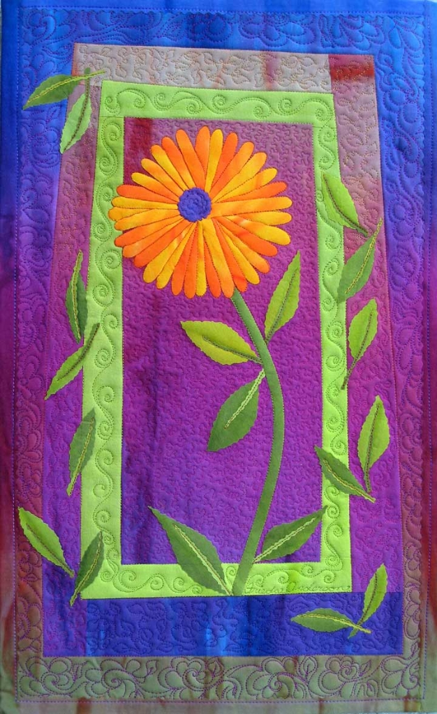 Blooming Fun. In this fusing class Frieda will teach you new easy ways to make this bright autumn flower. Using collage techniques and raw edge fusing you will achieve beatiful effects. This is the quilt you want hanging on your wall to cheer you through the winter.