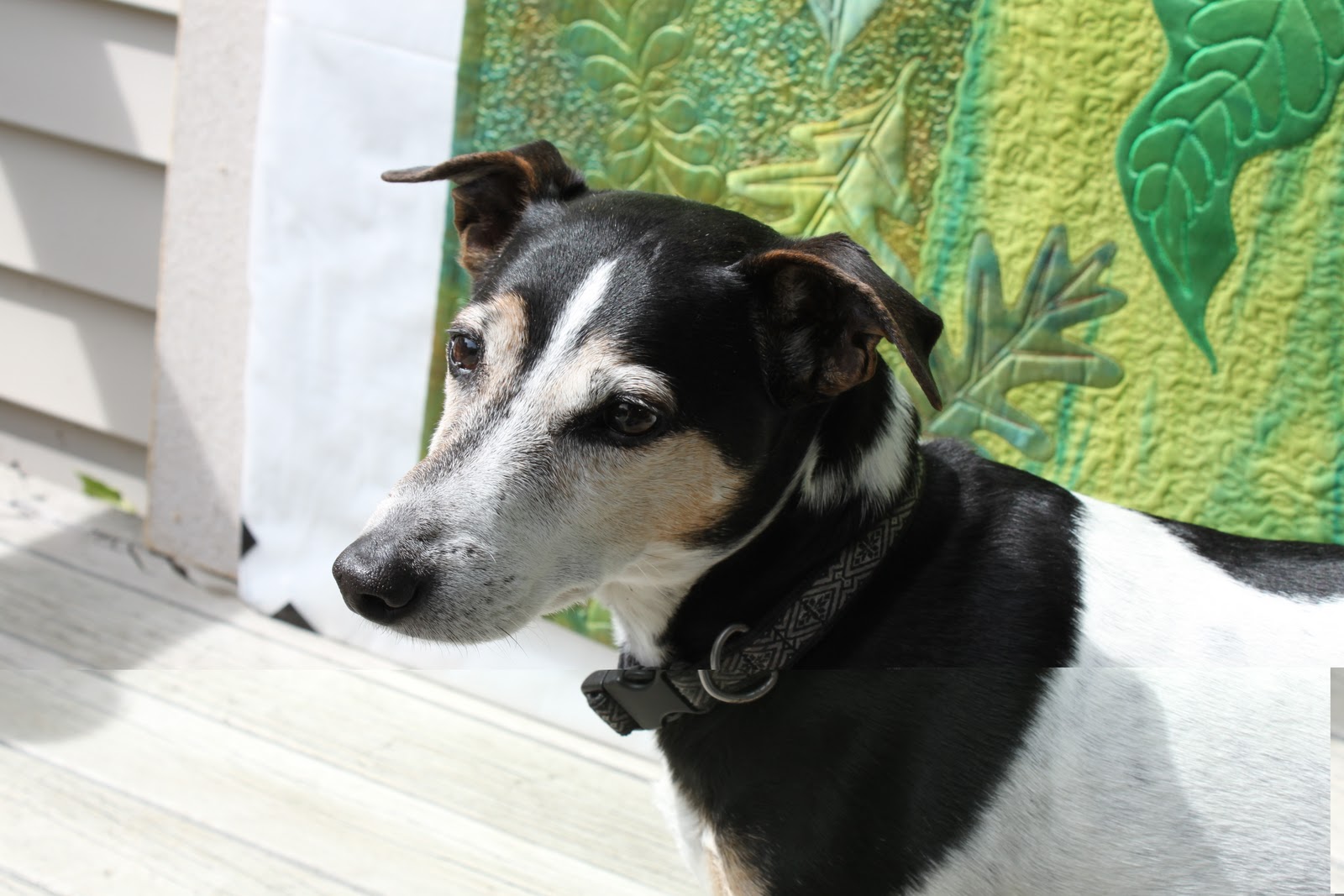 I love using decorative rotary blades in my fused projects and will use two or three different ones in one project. I have used the pinking blade in my 45 ml rotary cutter to cut out the binding for this quilt. These measure 1 1/4” x 18” each. I drape them over a chair to keep them safe and un-creased.